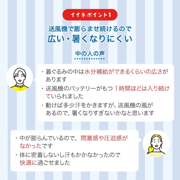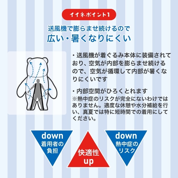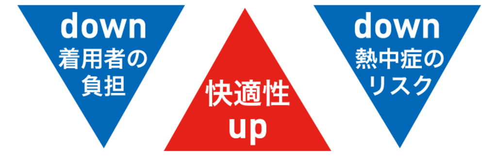 ※熱中症のリスクが完全にないわけではありません。適度な休憩や水分補給を行い、真夏では特に短時間での着用にしてください。
