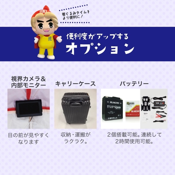 | オプション | 視界カメラ&内部モニター キャリーケース 追加バッテリー |