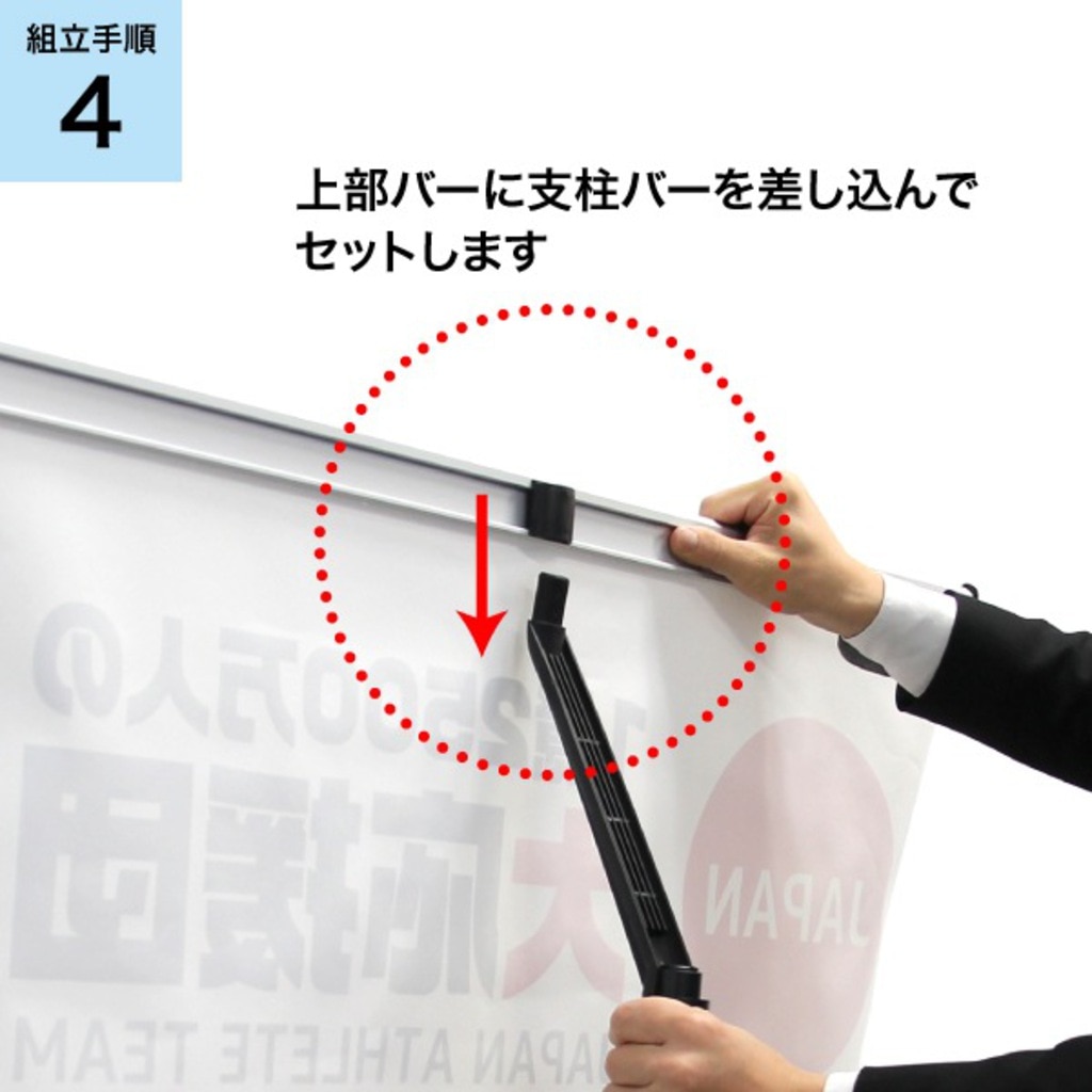 連結金具を使えば、複数のバナーをつなげて大型ディスプレイとして展開することも可能。 スペースや用途に応じて柔軟に活用できます。