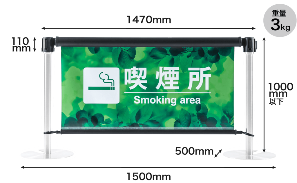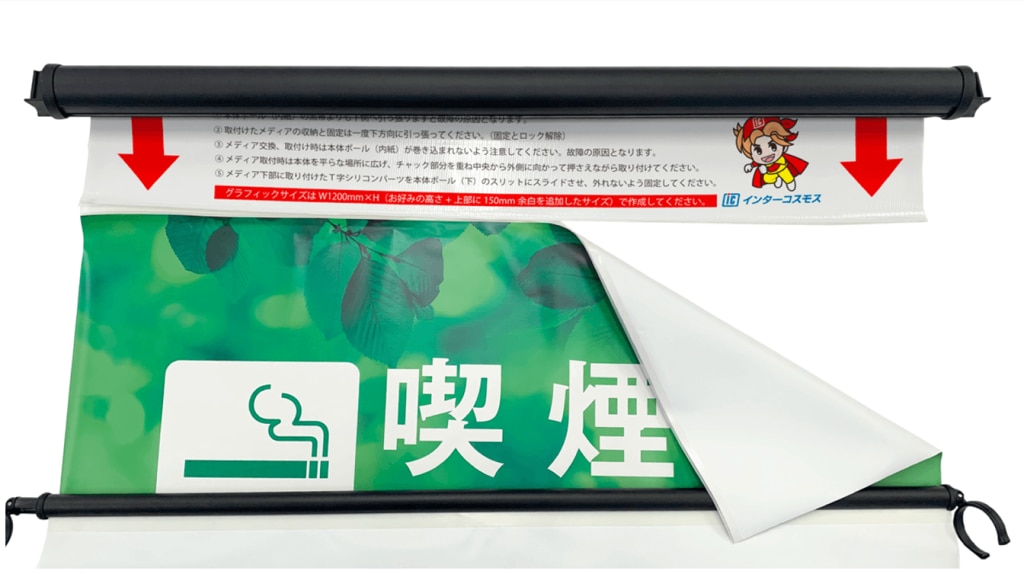 | 対応サイズ | W1200mm×H(高さ)はポールの高さに合わせて+上部150mmの白場 |