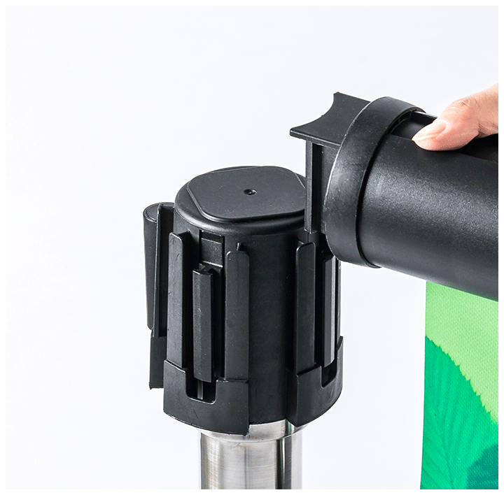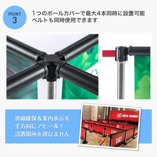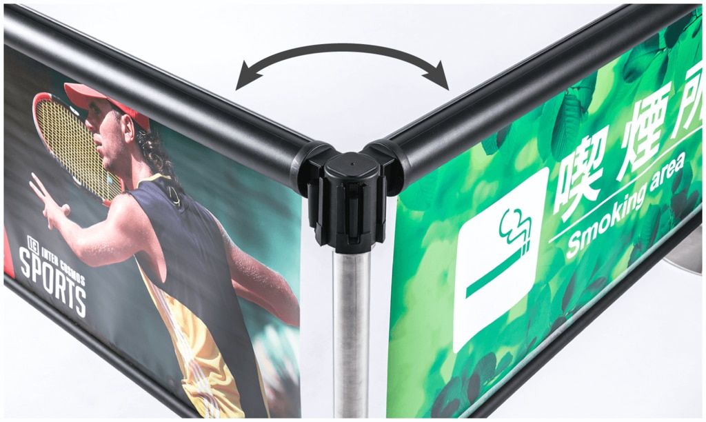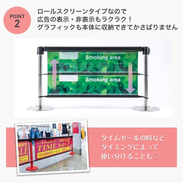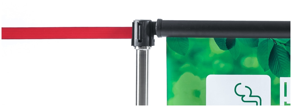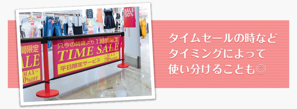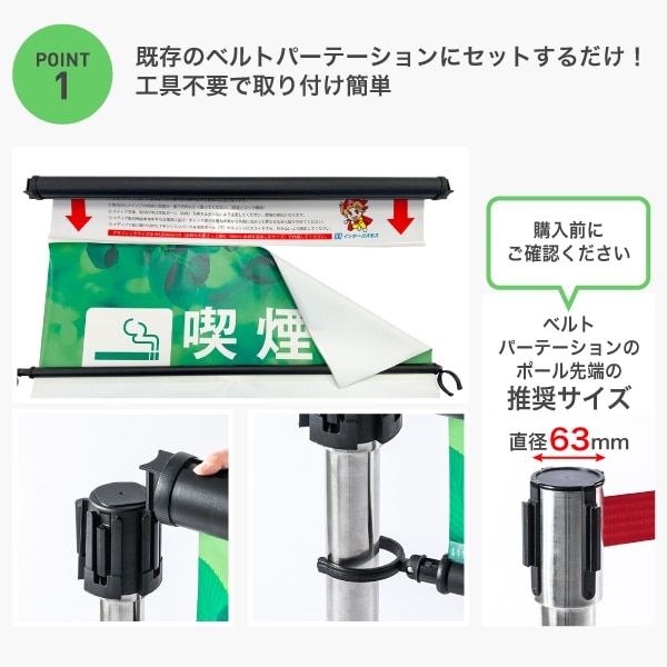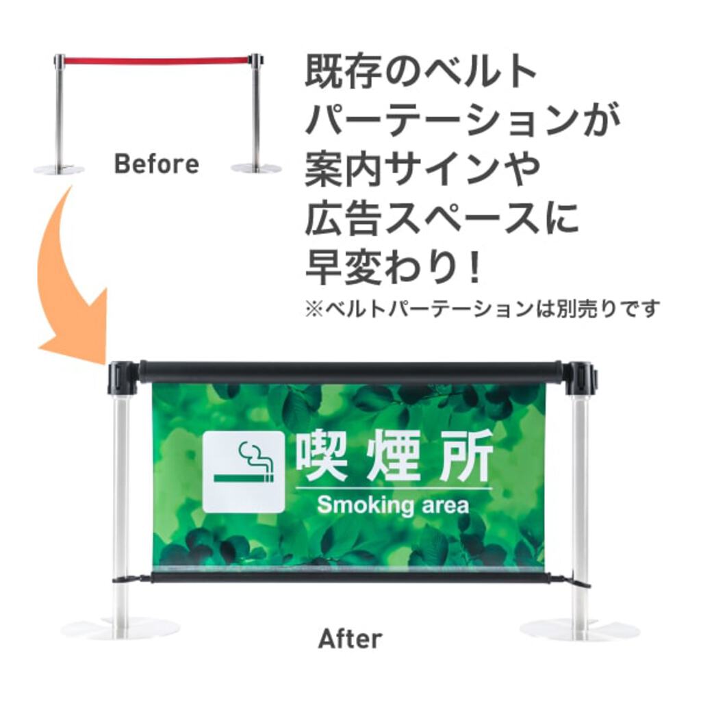 既存のベルトパーテーションポールに付けるだけで、案内サインや広告スペースに早変わり!