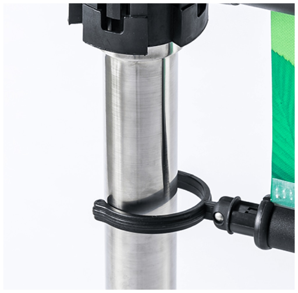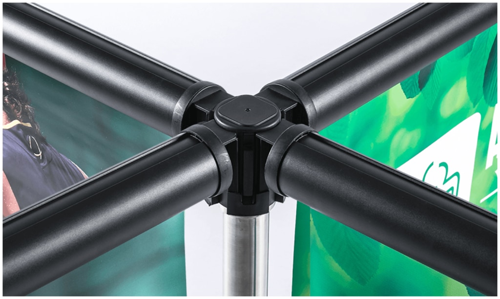 3、スクリーンがはためかないようにフックで固定してグラフィックを下に引けば完成!