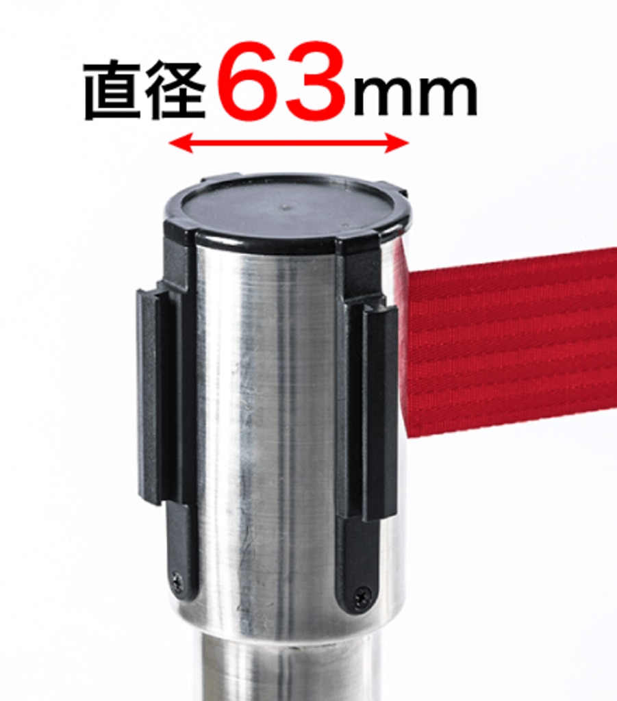 パーテーションスクリーンを設置するベルトパーテーションのポール先端は直径63mmが推奨サイズです。