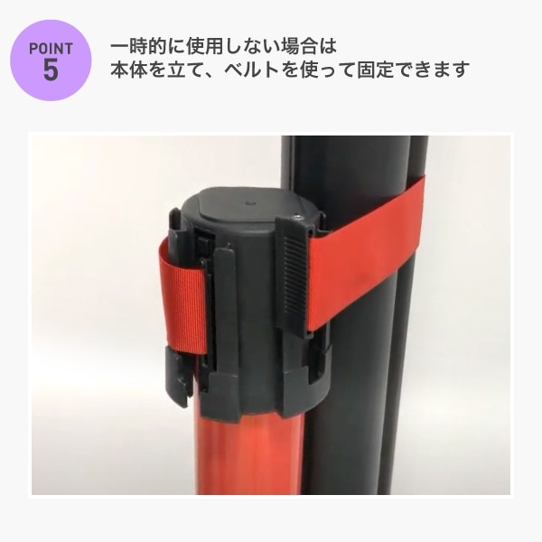 2、ベルトパーテーションの先端にポールカバーをセットし、本体の端をスライドさせます。