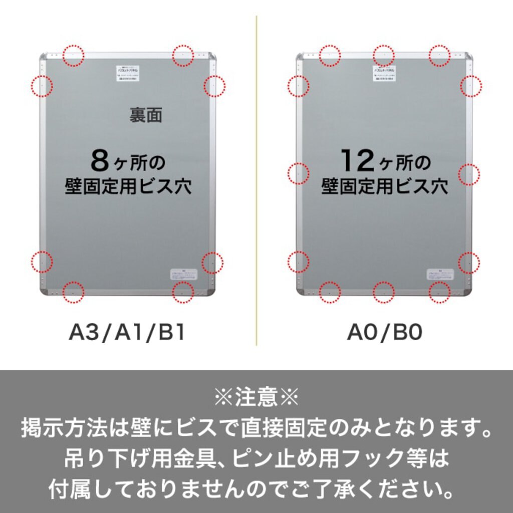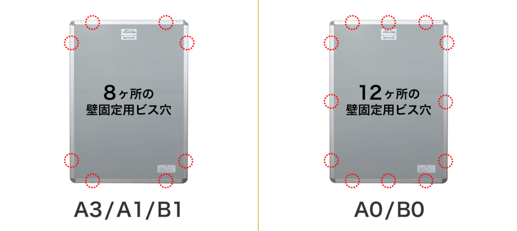 サイズによって壁固定用ビス穴の数が違います。