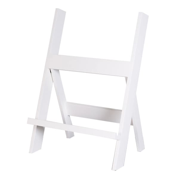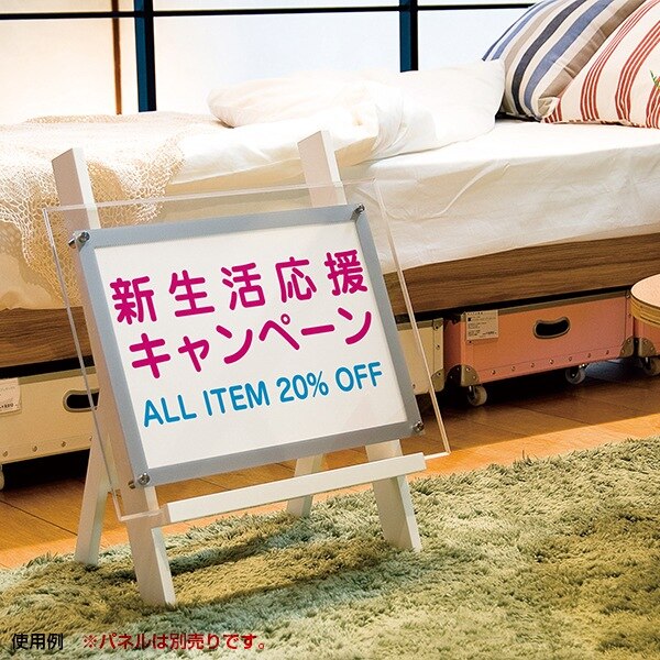 低めに掲示したいスペック表示やイメージ表示にピッタリな、足が短い木製イーゼルです。