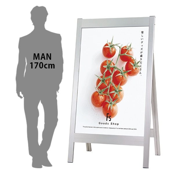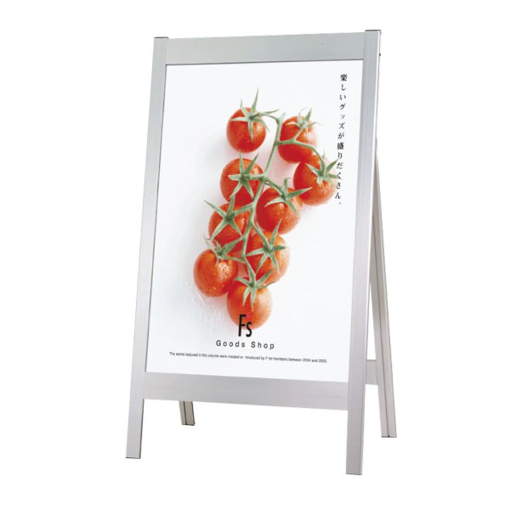 遠くからでもお客様をしっかり誘導できる縦型・大型・A型ポスタースタンド。