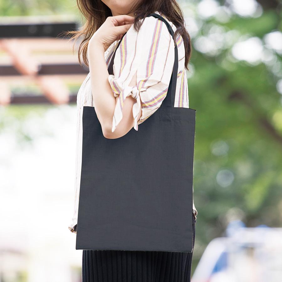 A4サイズの雑誌やカタログが入り、肩掛けできるタイプのトートバッグです。