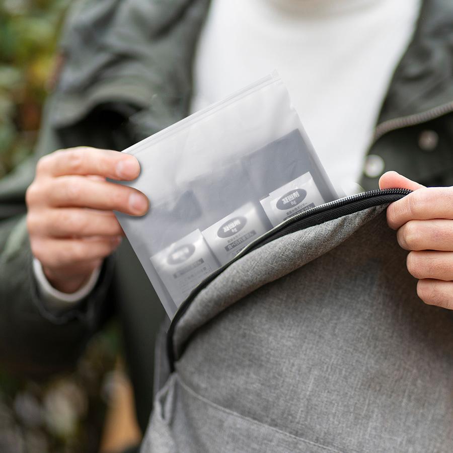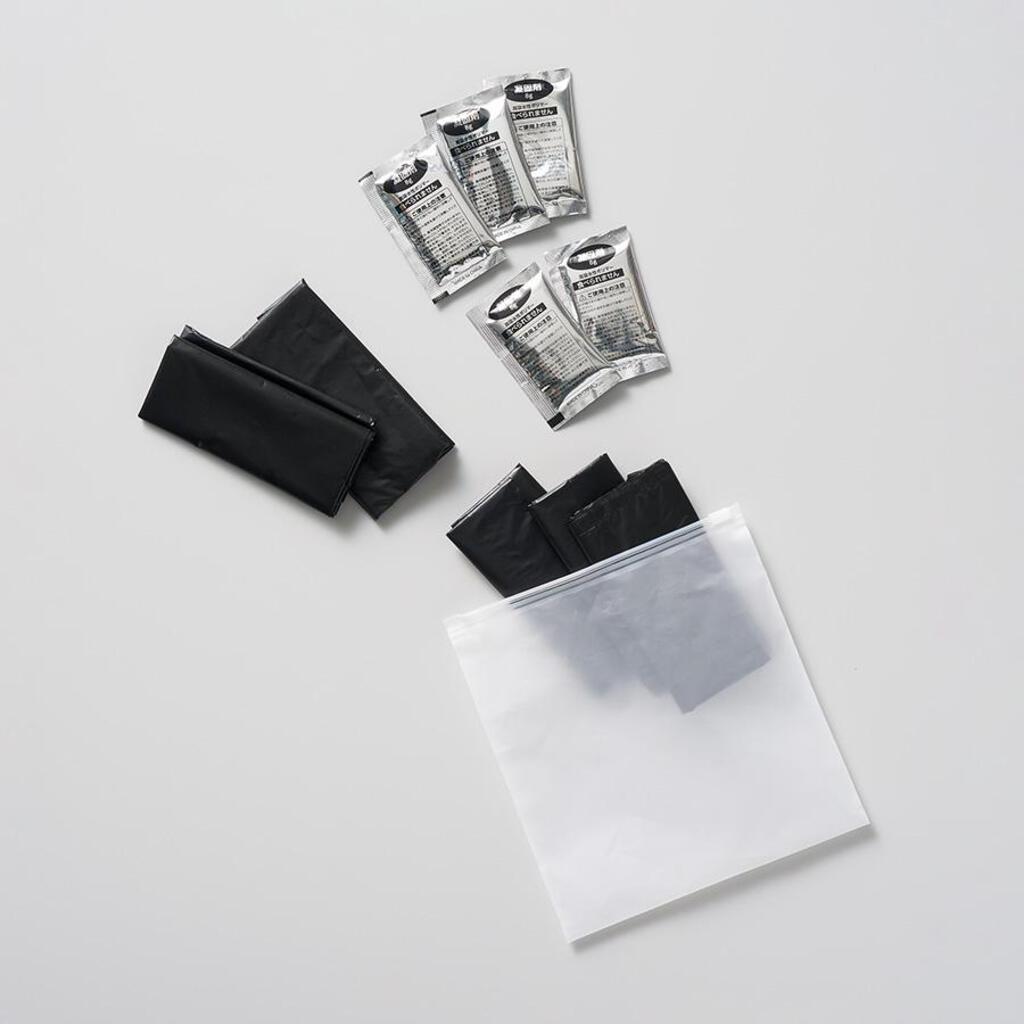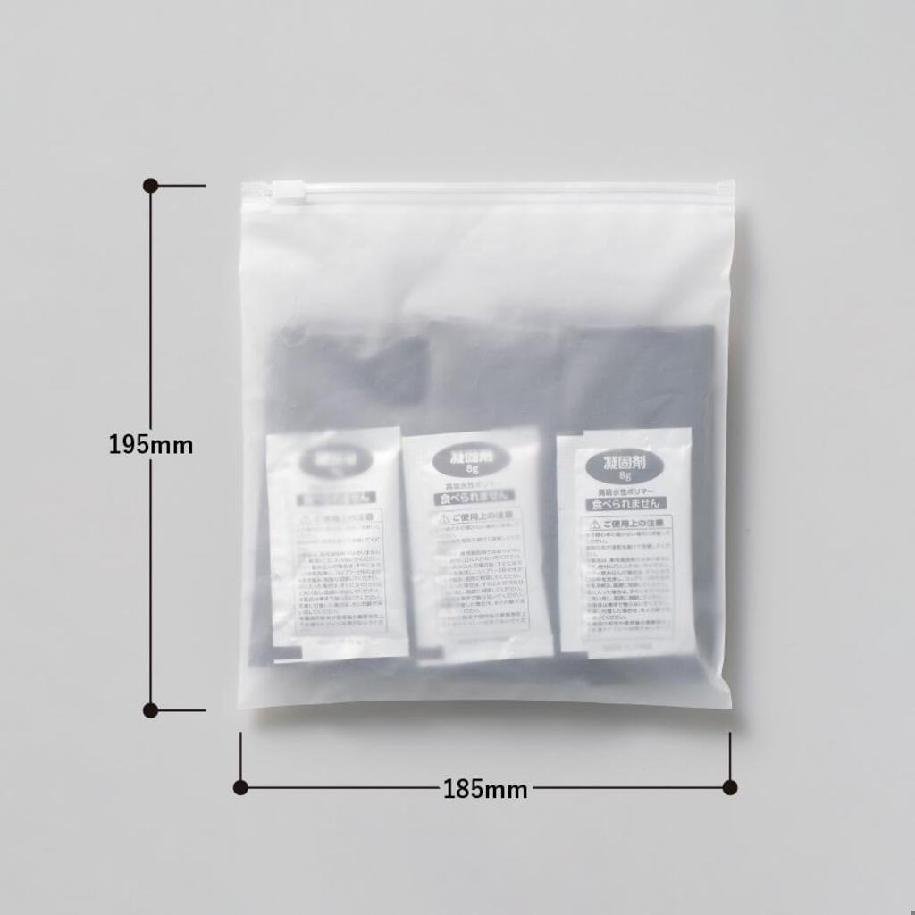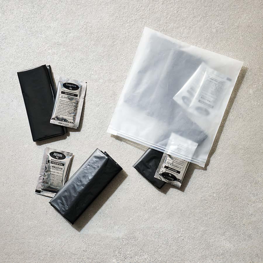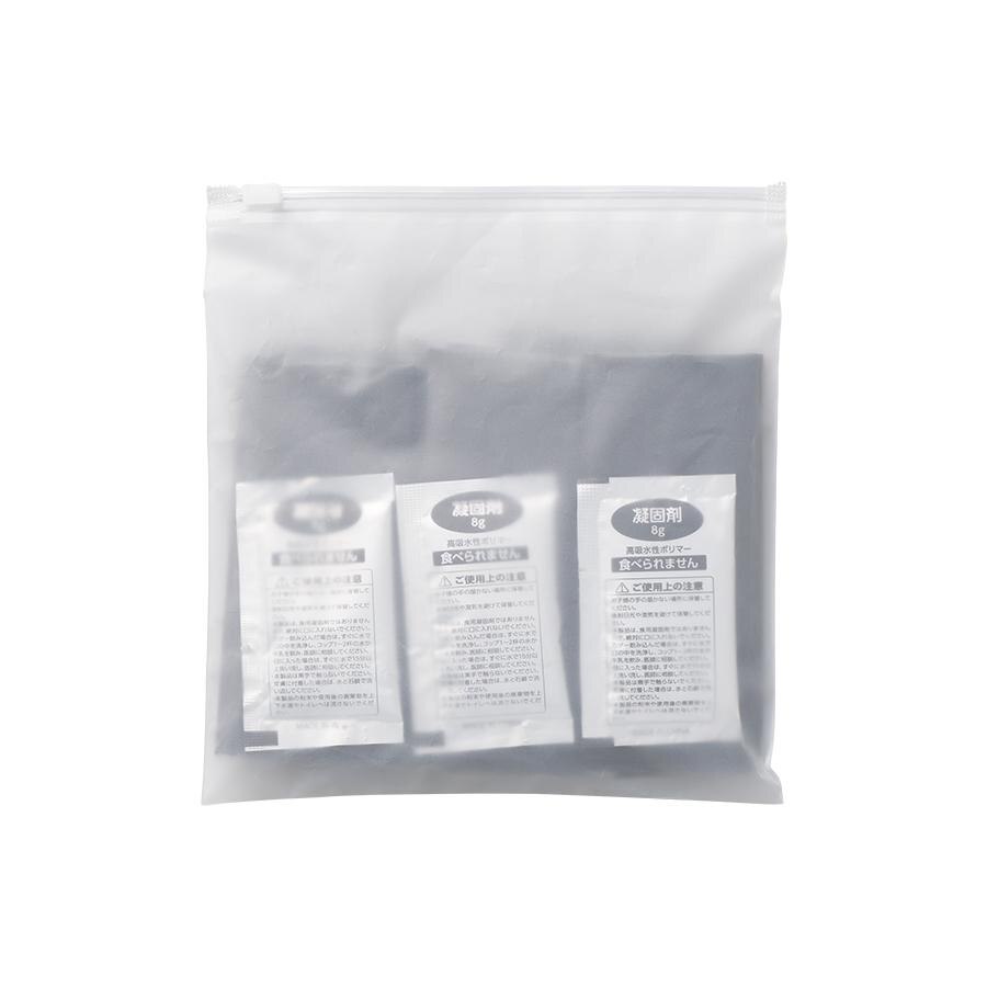 便座にセットして使用する汚物袋と、排尿時に使用する凝固剤がセットになっています。