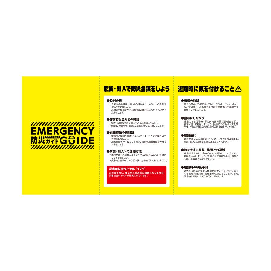 | 素材 | ボトル/PS、PP・ホイッスル/ABS 他・アルミブランケット/アルミ蒸着PET・圧縮タオル/レーヨン・マスク/不織布(PP) 他・防災ガイド/紙 |