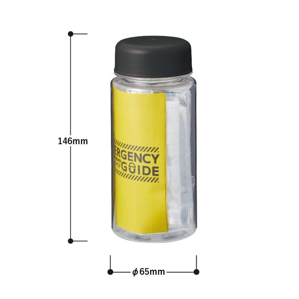 被災時に必要なものがぴったりと入った、コンパクトな防災ボトルセットです。