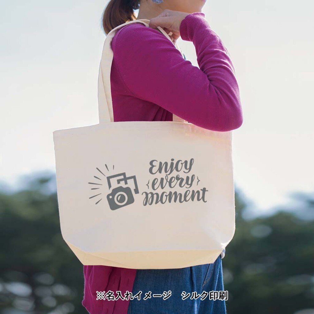 A4サイズが横に入るサイズ感の厚みあるコットン生地のトートバッグです。使い勝手のいいサイズと丸みを帯びた横型フォルムのデザインが人気を呼んでいます。カジュアルトートとしても、ノベルティトートとしても幅広い用途としてご利用いただけます。印刷方法も単色からフルカラー印刷まで対応しており、お好みのデザインでオリジナルトートバッグを作成出来ます。