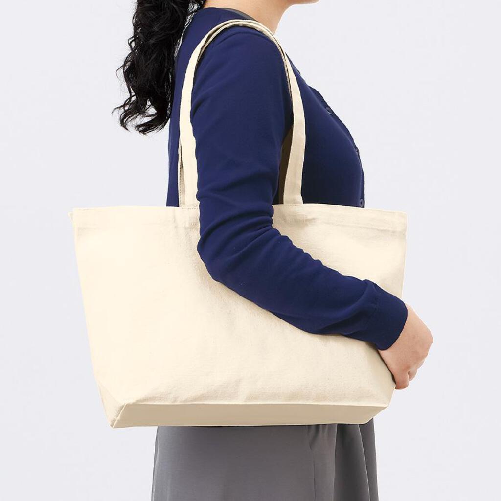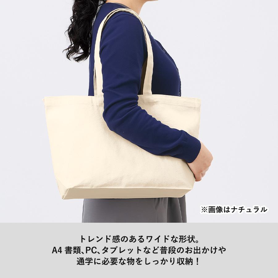 トレンド感のある横広シルエットのキャンバストートバッグです。