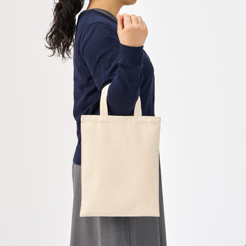 Sサイズ~LLサイズまでご用意しており、MサイズA4がしっかり入るサイズ感で手提げ袋として使いやすいハンドルの長さになります。