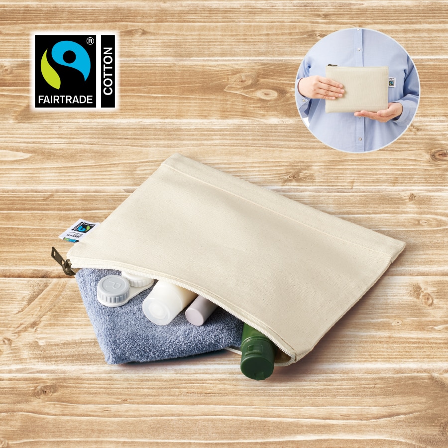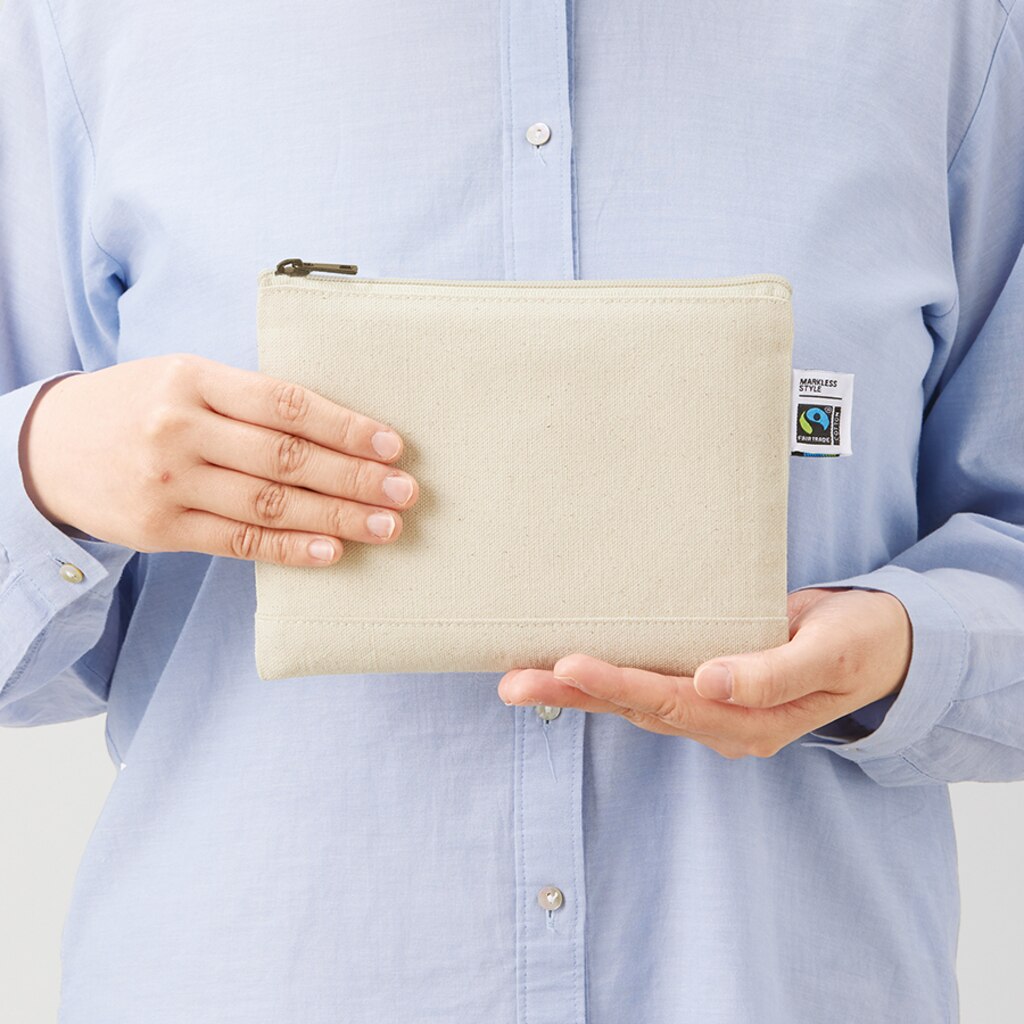 フェアトレードコットンキャンバスフラットポーチ(S) ナチュラル