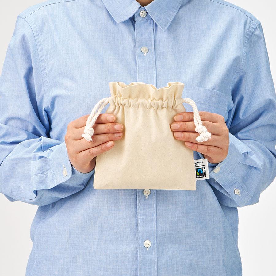 フェアトレードコットンフリル巾着(S)ナチュラル