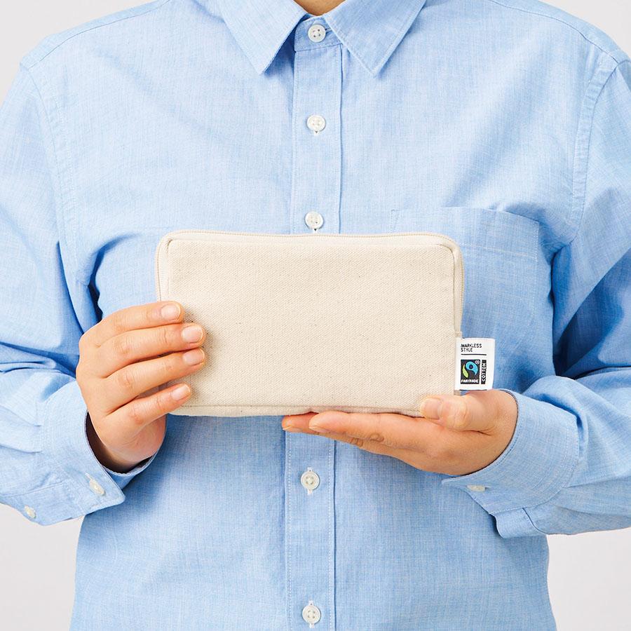 フェアトレードコットンスリムスクエアポーチ(M)ナチュラル