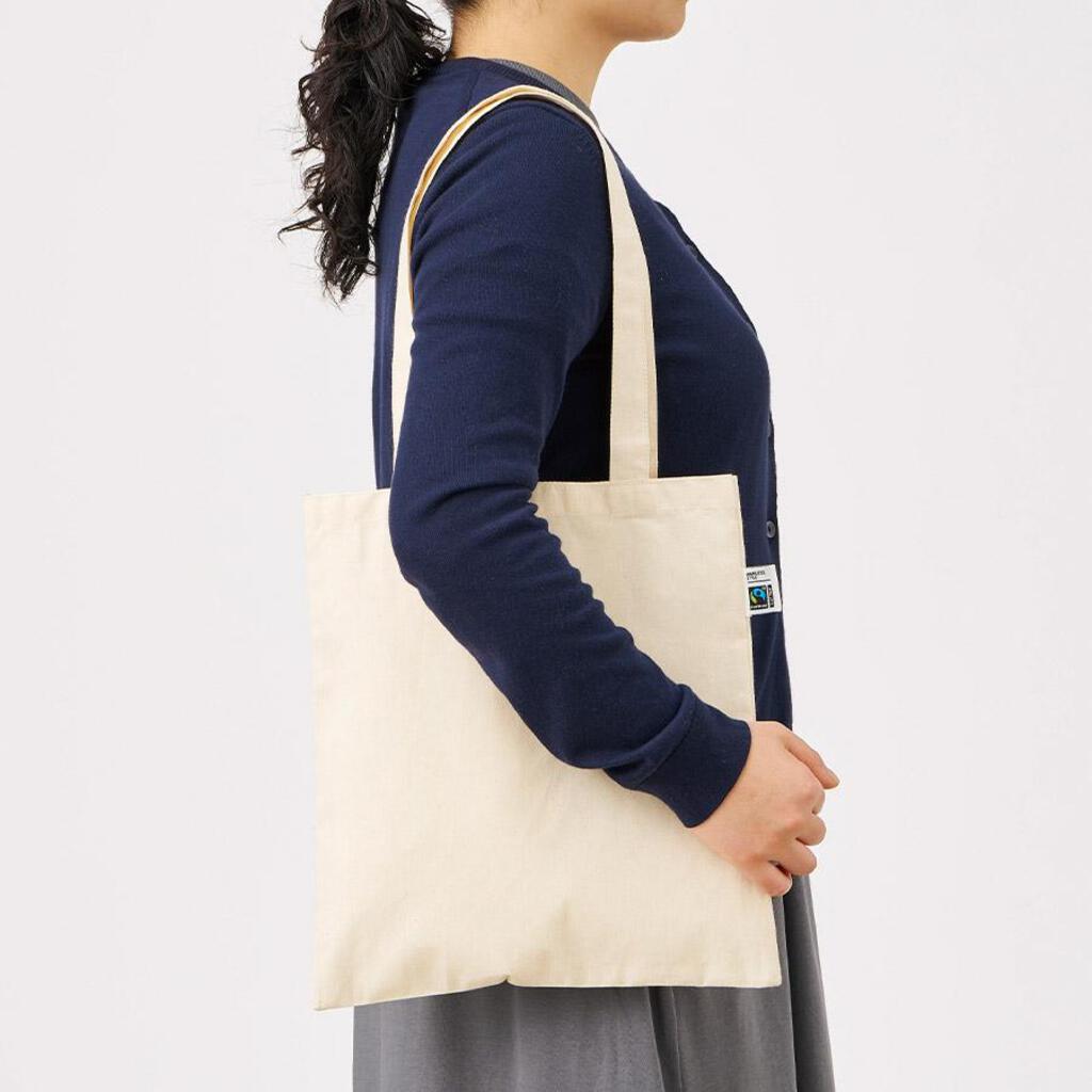 薄手で使いやすい5オンスのフェアトレードコットンを使用したフラットタイプのトートバッグです。