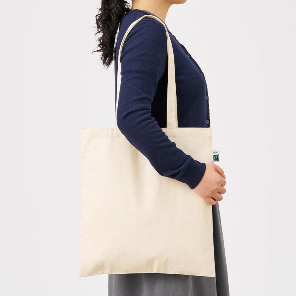 薄手で使いやすい5オンスのフェアトレードコットンを使用したフラットタイプのトートバッグです。