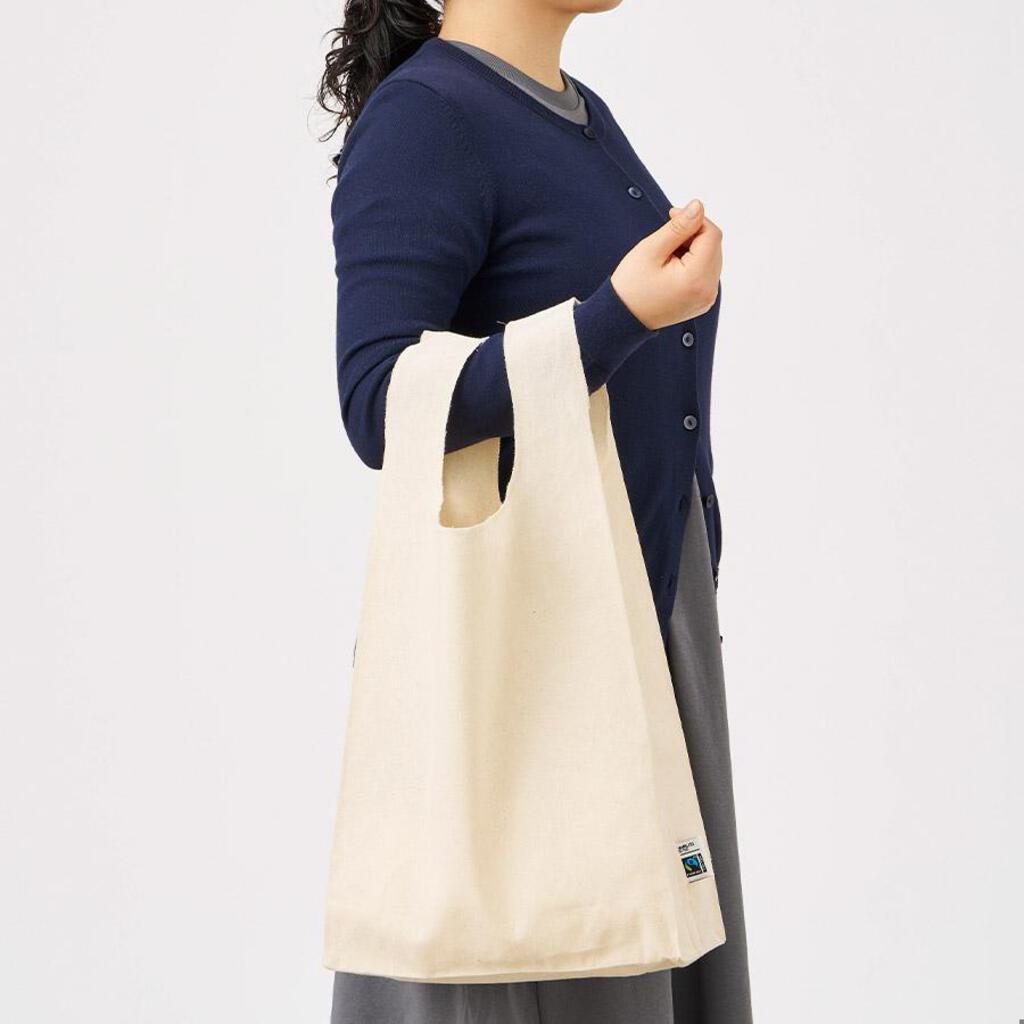 フェアトレードコットンマチ付マルシェバッグ ナチュラル