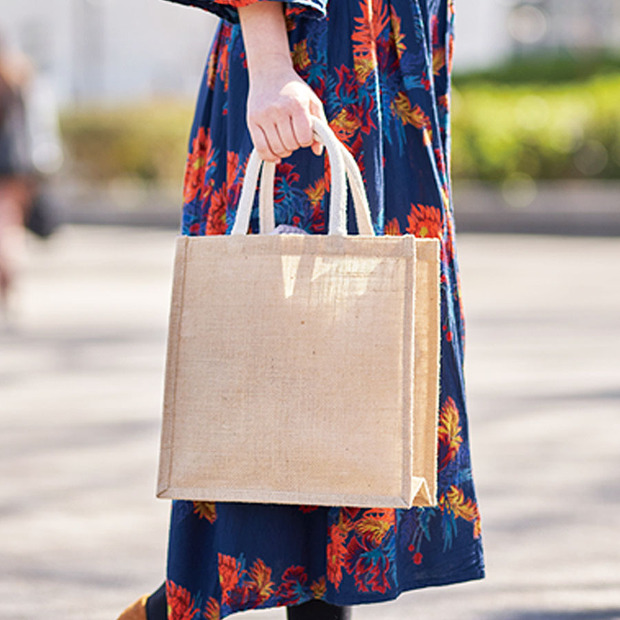 ジュートスクエアトート(M) ナチュラルベージュ