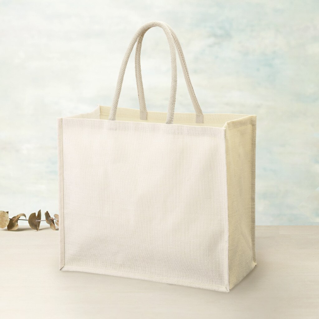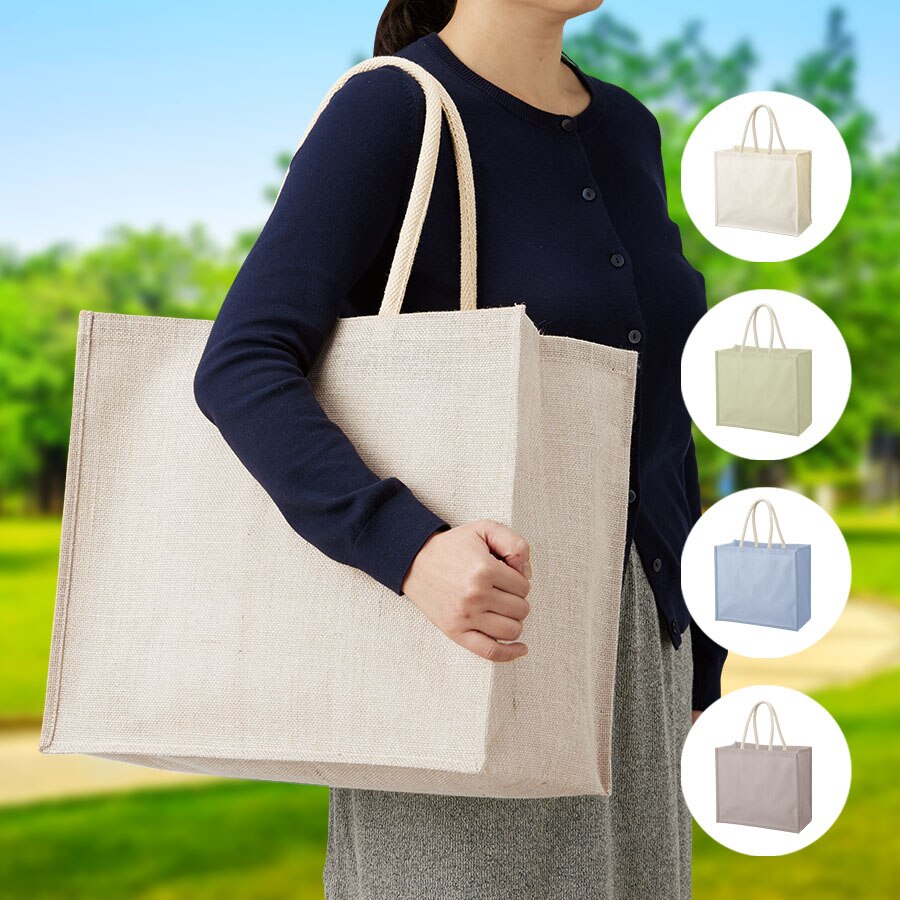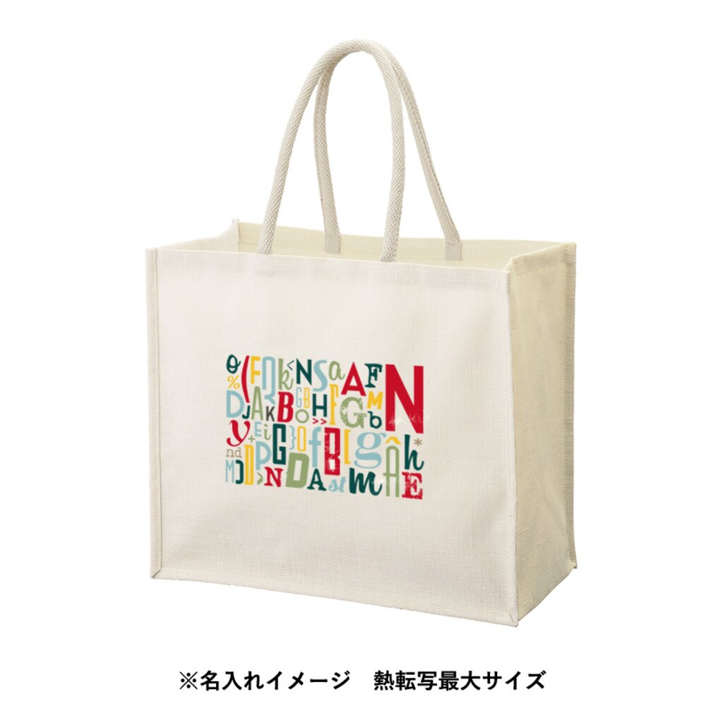 大容量タイプのジュートスクエアトートです。
