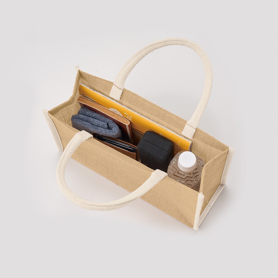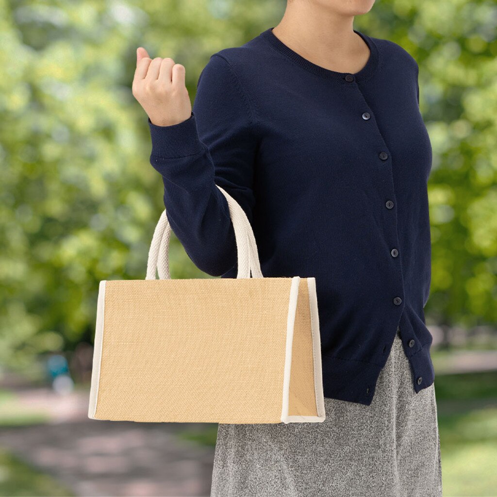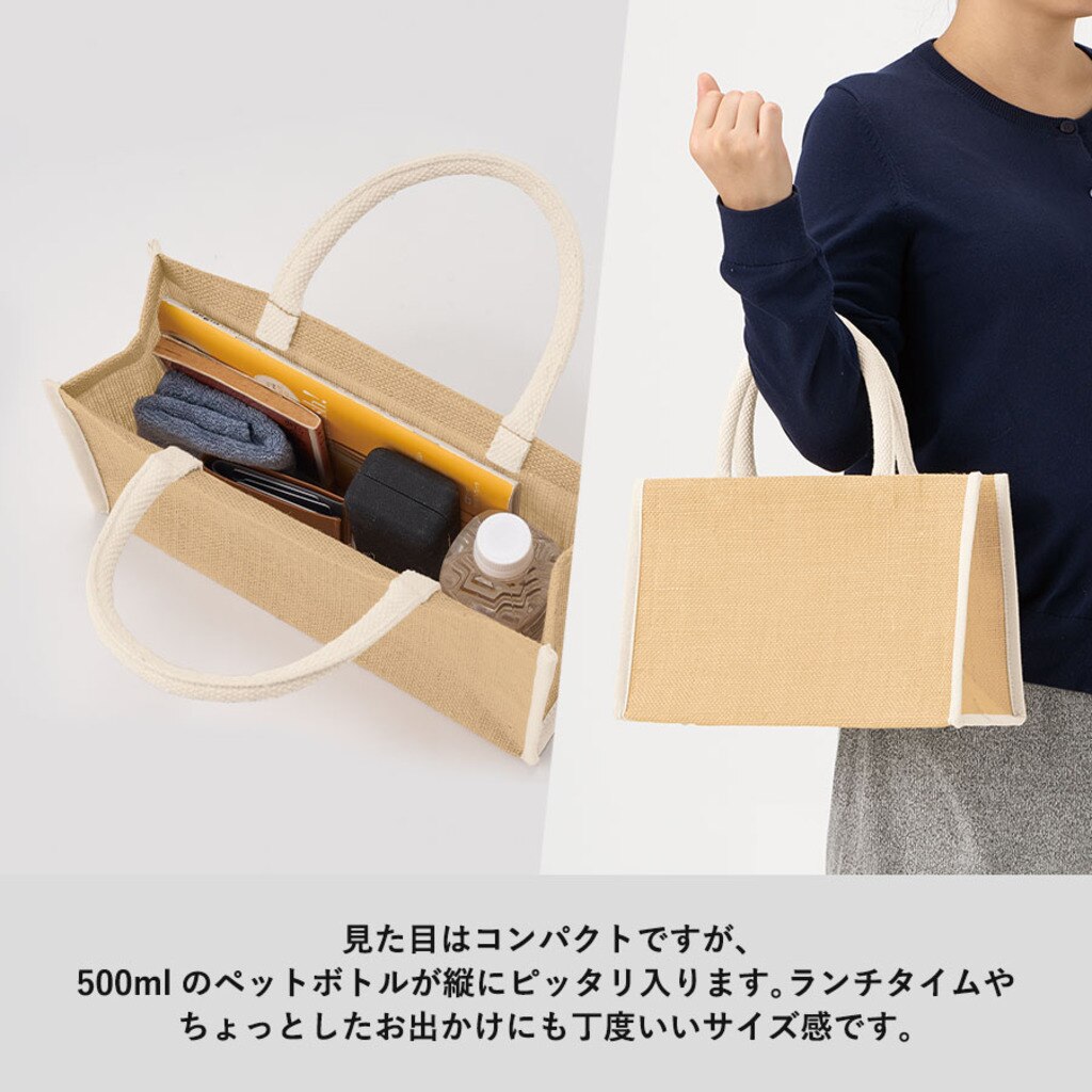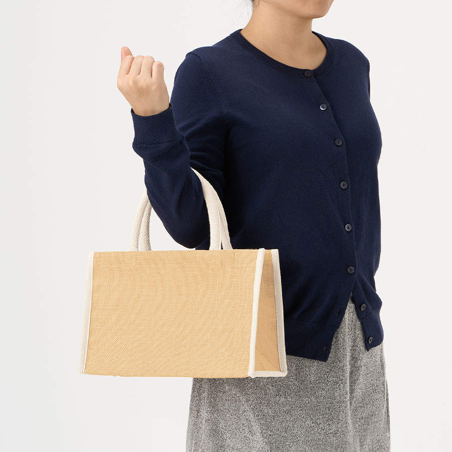 パイピング&ハンドル部分を配色にしたデザインのジュート素材バッグです。