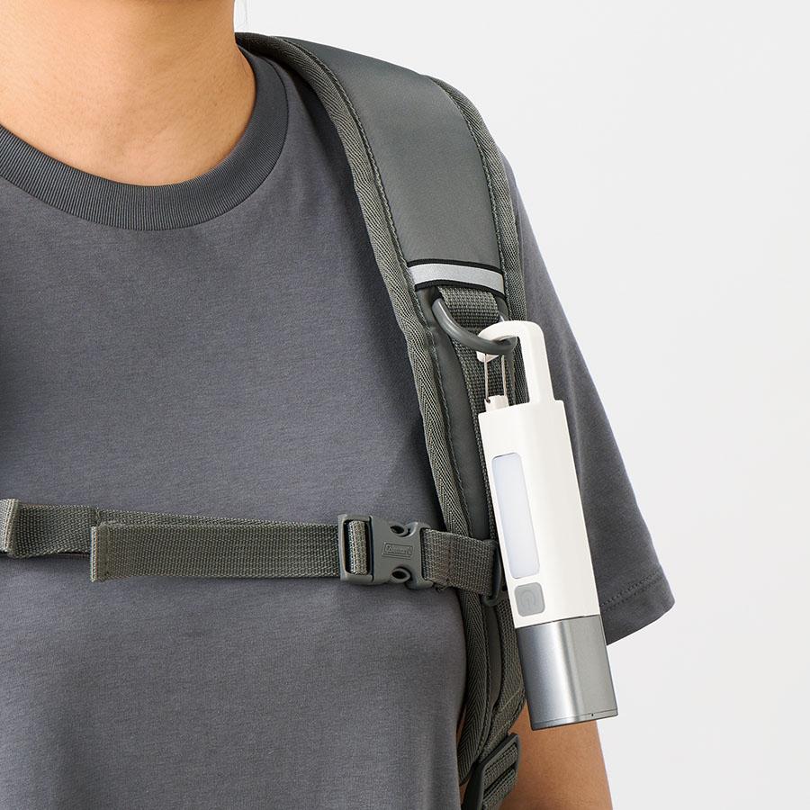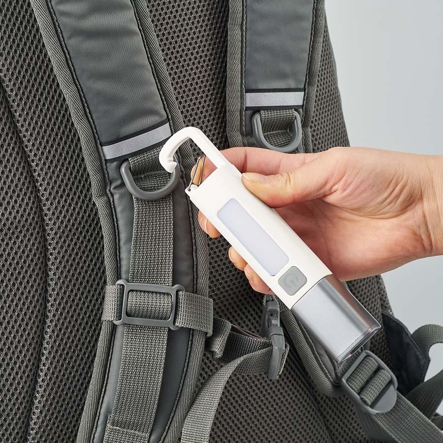 さらに本体上部にはカラビナがついており、カバンなど引っ掛けたり吊り下げてランタンにするのもおすすめです。
