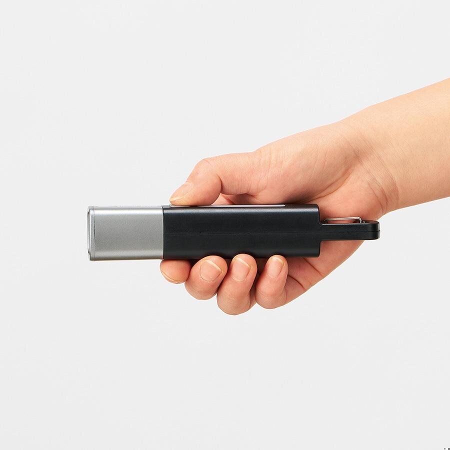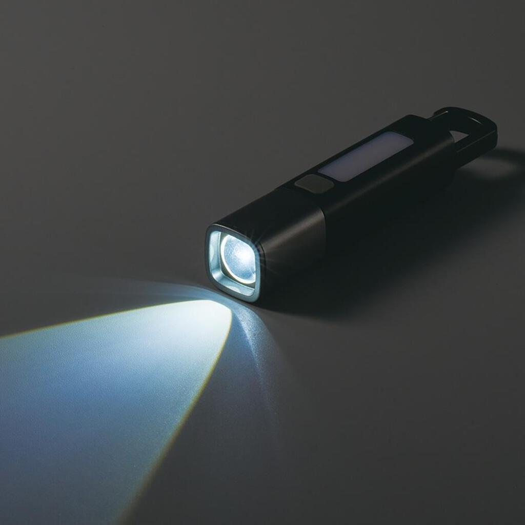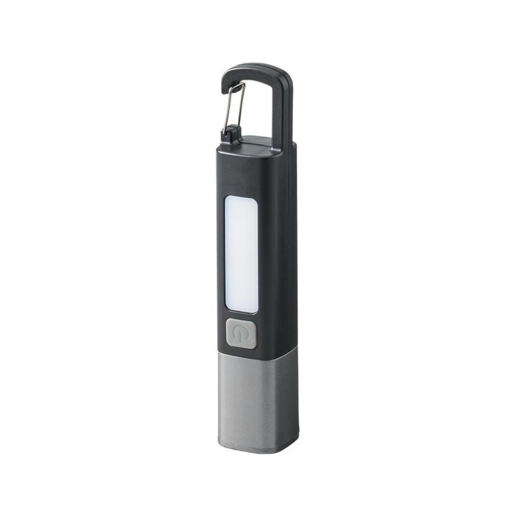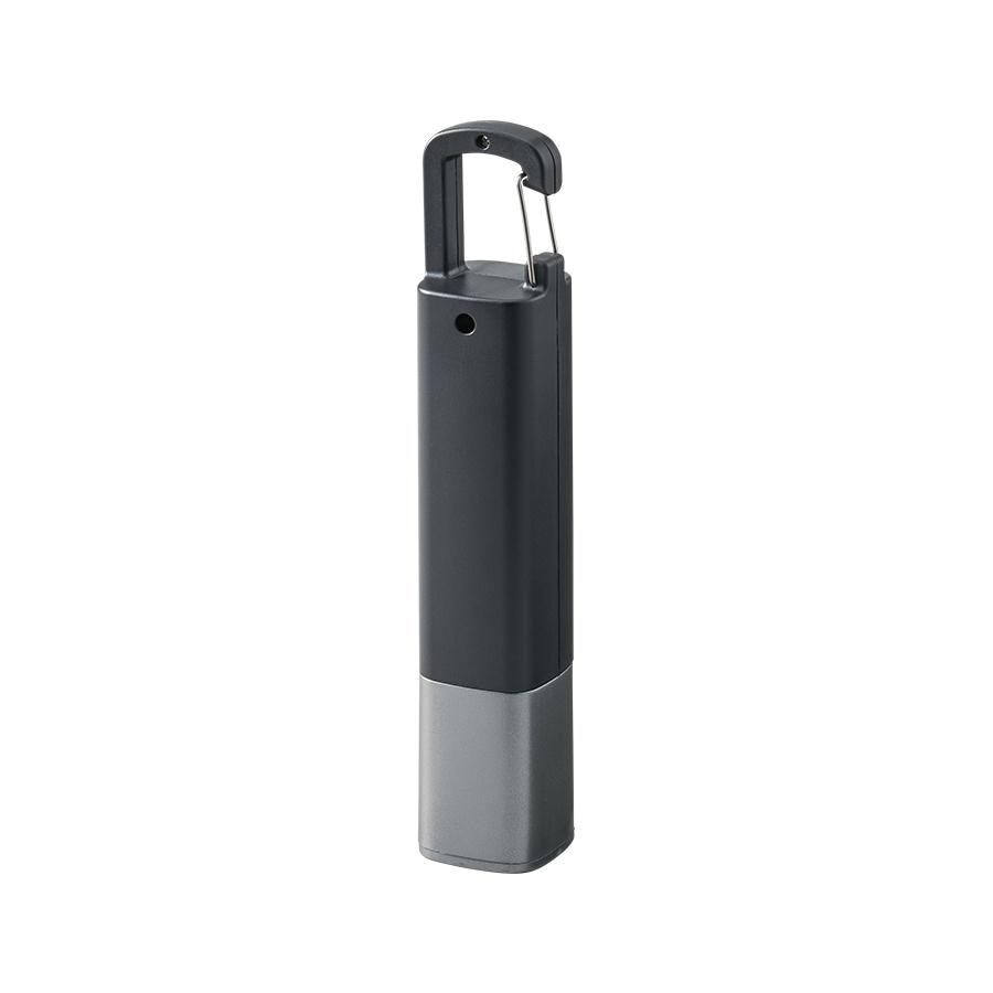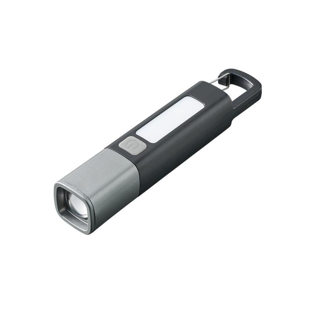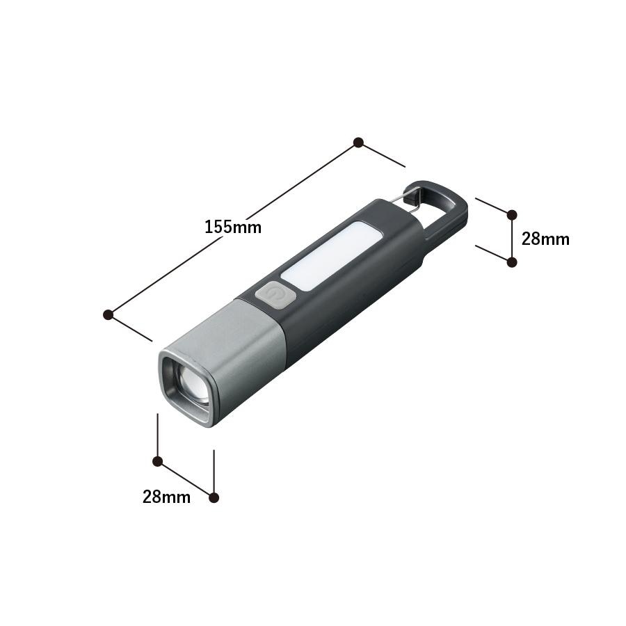 ボタンを1回押すとハンディライトが点灯、もう一度押すと点滅、さらにもう一度押すことで側面のLEDが点灯します。