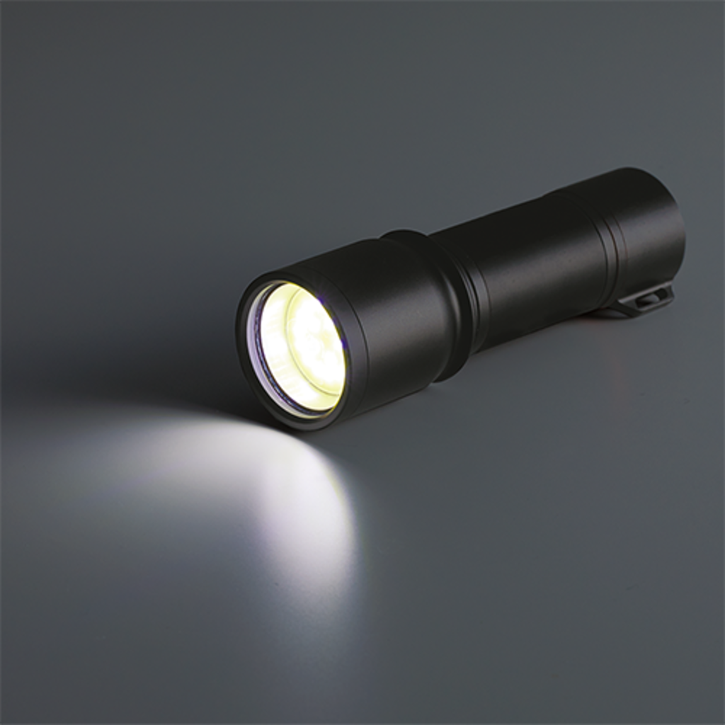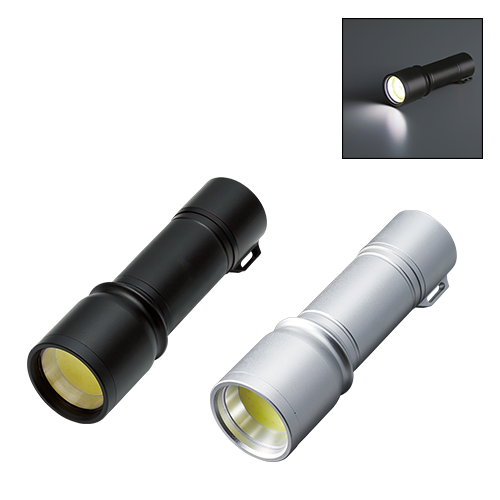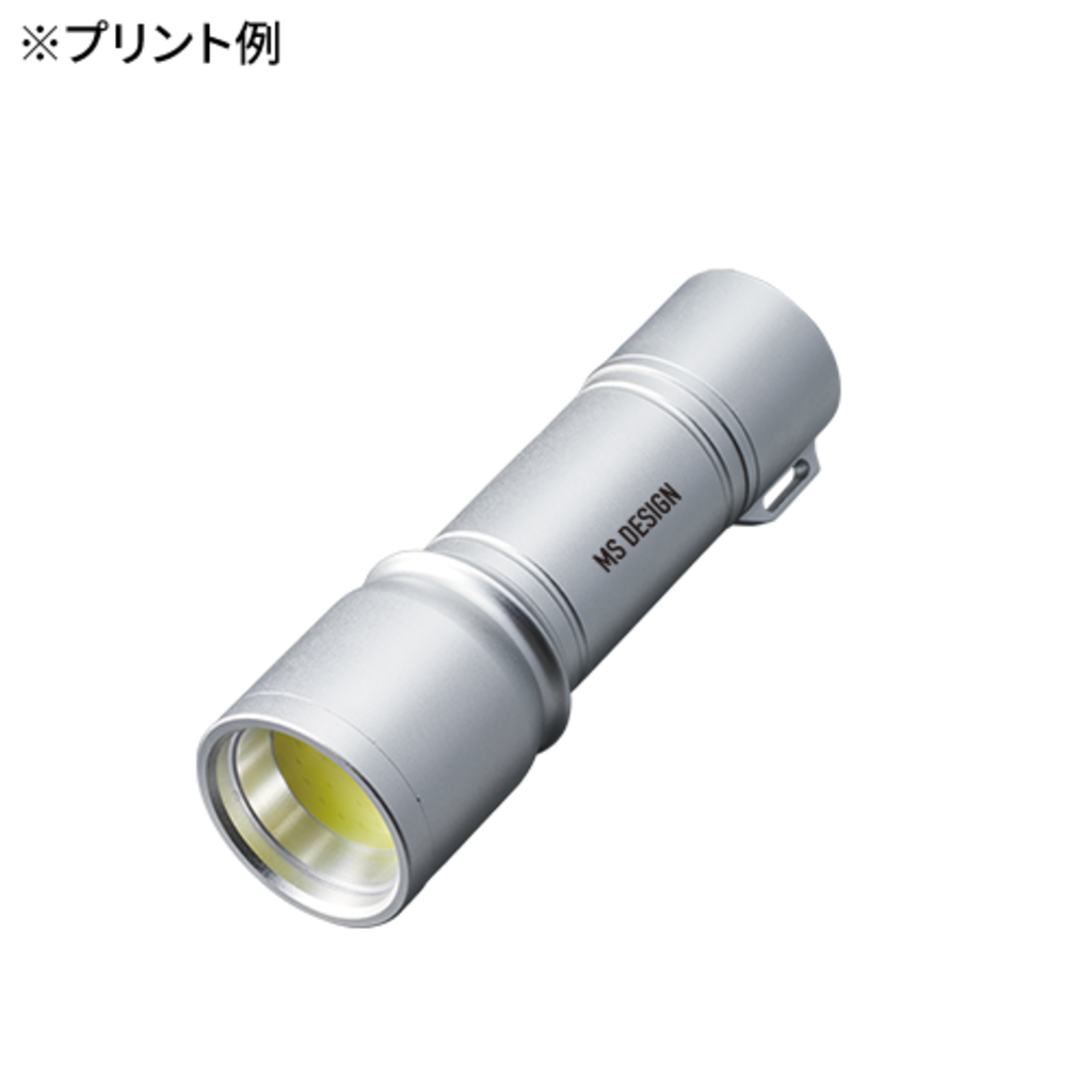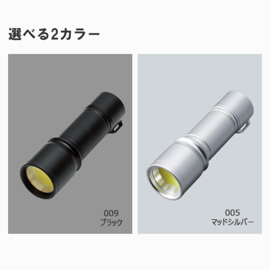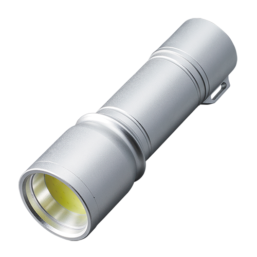 片手に収まるコンパクトな明るさバツグンの懐中電灯です。お子様でも片手で持つことができる持ち運びしやすいコンパクトサイズです。シンプルな見た目で夜間や停電時等に手に取りやすいデザンです。ご自宅にはもちろん、車内やバッグに忍ばせればもしもの時にとっても便利です。ブラックとマットシルバーの2色展開で目立たないシンプルなカラーリングとなっております。ご成約時の記念品や社員へのプレゼントにもおすすめです。