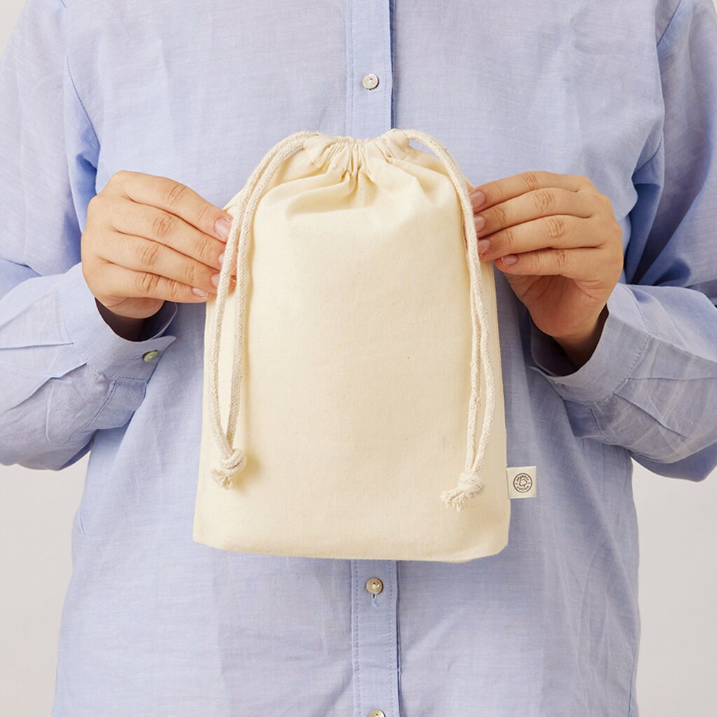 オーガニックコットンガゼット巾着(M) ナチュラル