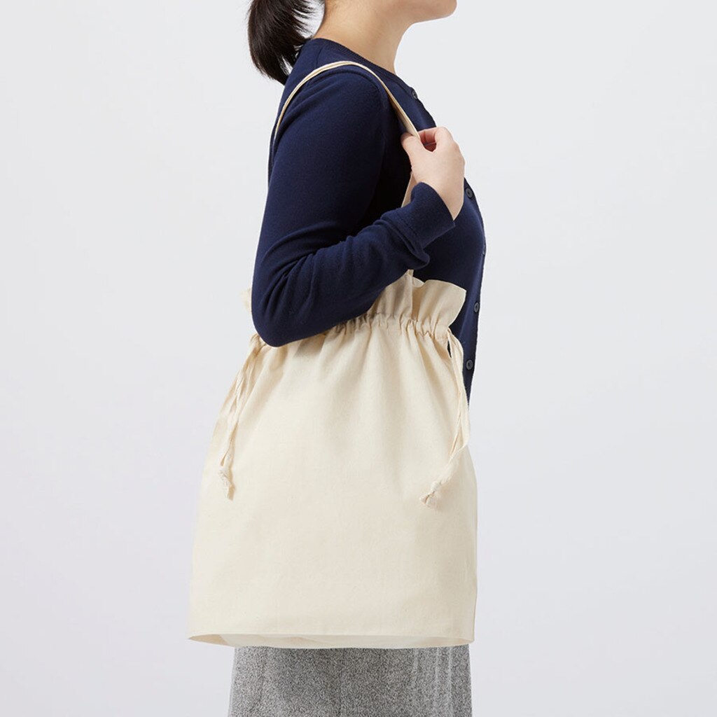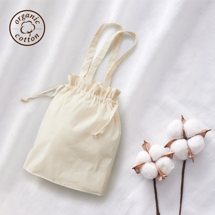 オーガニックコットンを使用したマチ付き巾着トートです。