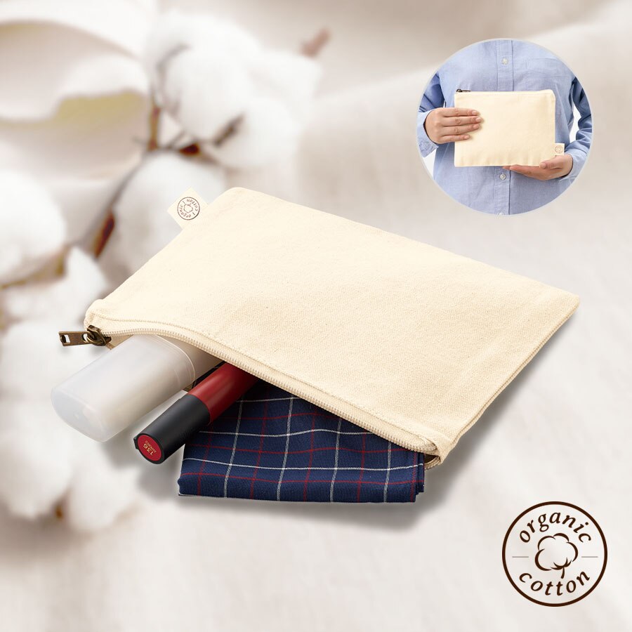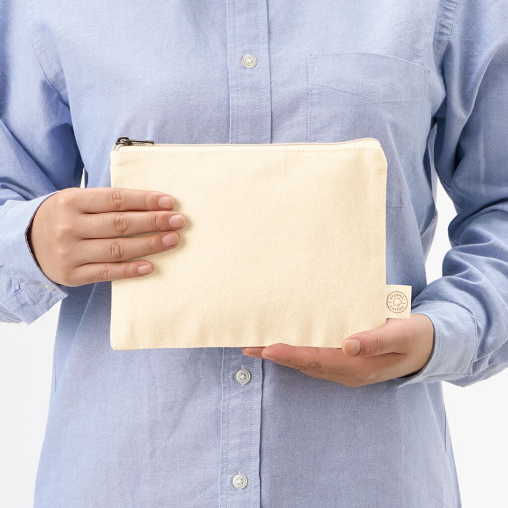 オーガニックコットンキャンバスフラットポーチ(M) ナチュラル