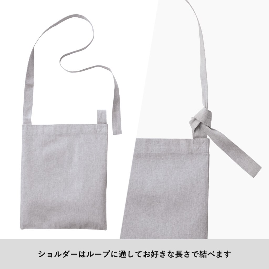 ループ部にショルダーを通して結ぶことにより、長さを調整できる仕様となっており、リボンのような結び目がアクセントのバッグです。肩掛け・斜め掛けができ、A4サイズが入るフラット型なので使いやすいサイズ感となっております。