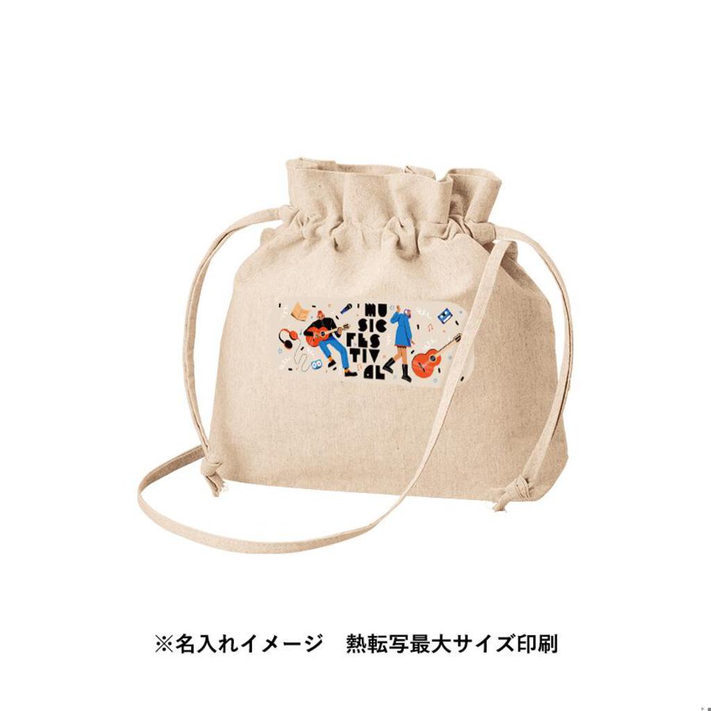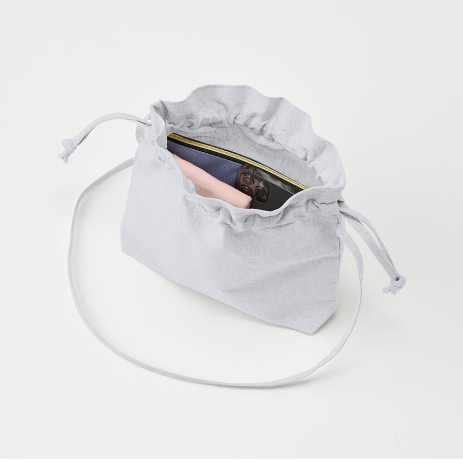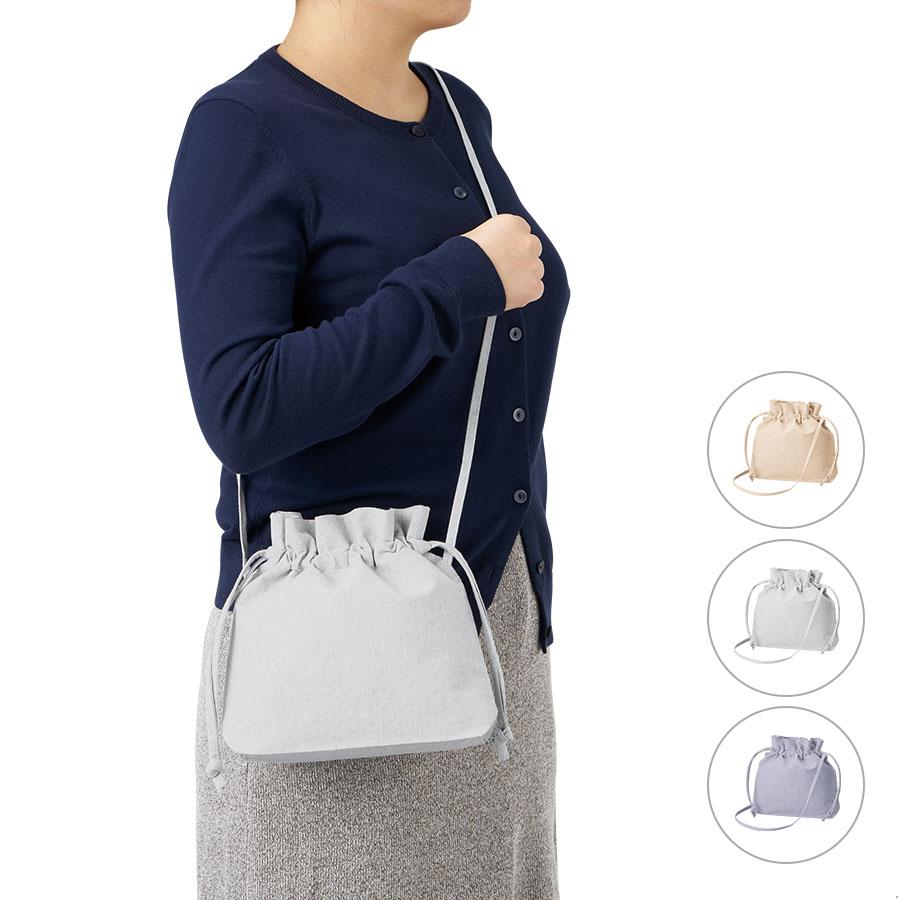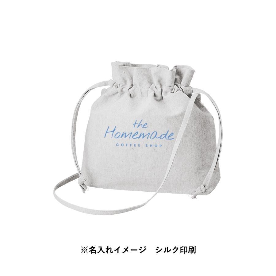 またショルダー紐はサイドで縫製しているので、紐が邪魔にならずに、巾着の開閉がしやすいような仕様です。