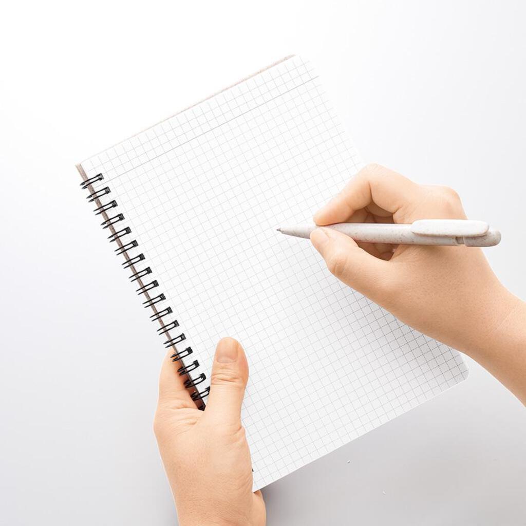 中の用紙は再生紙を使用しており、用紙には、字がきれいに見えるように薄いグレーの方眼線が入っています。