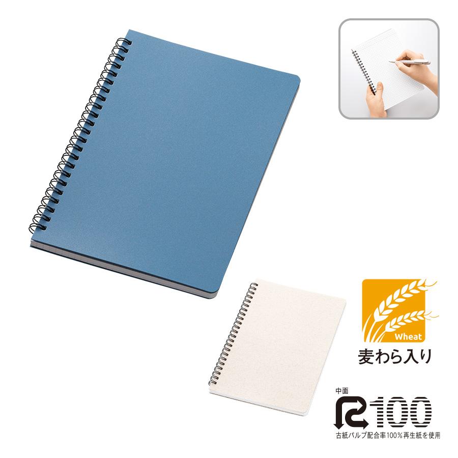 表紙にエコ素材の麦わらを25%配合したリングノートです。