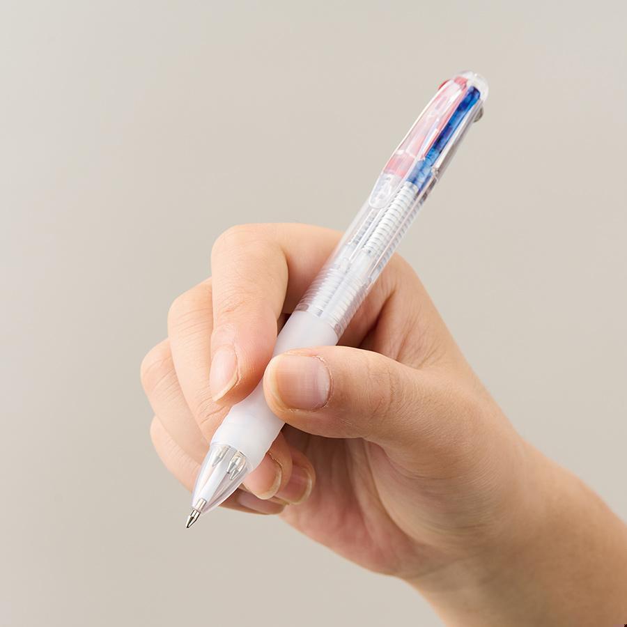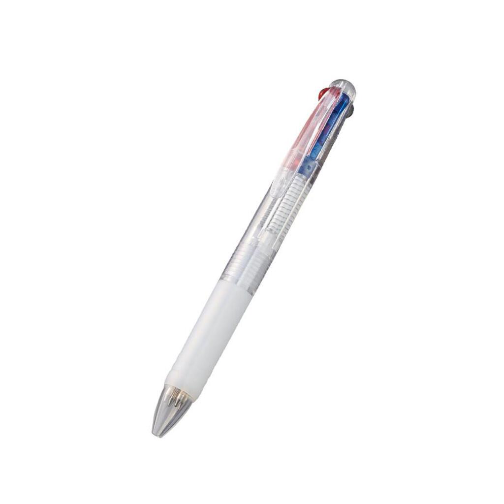 クリアボディの多色ボールペンです。