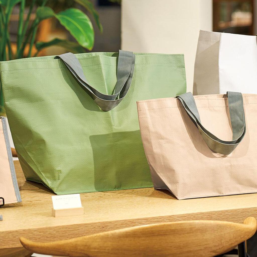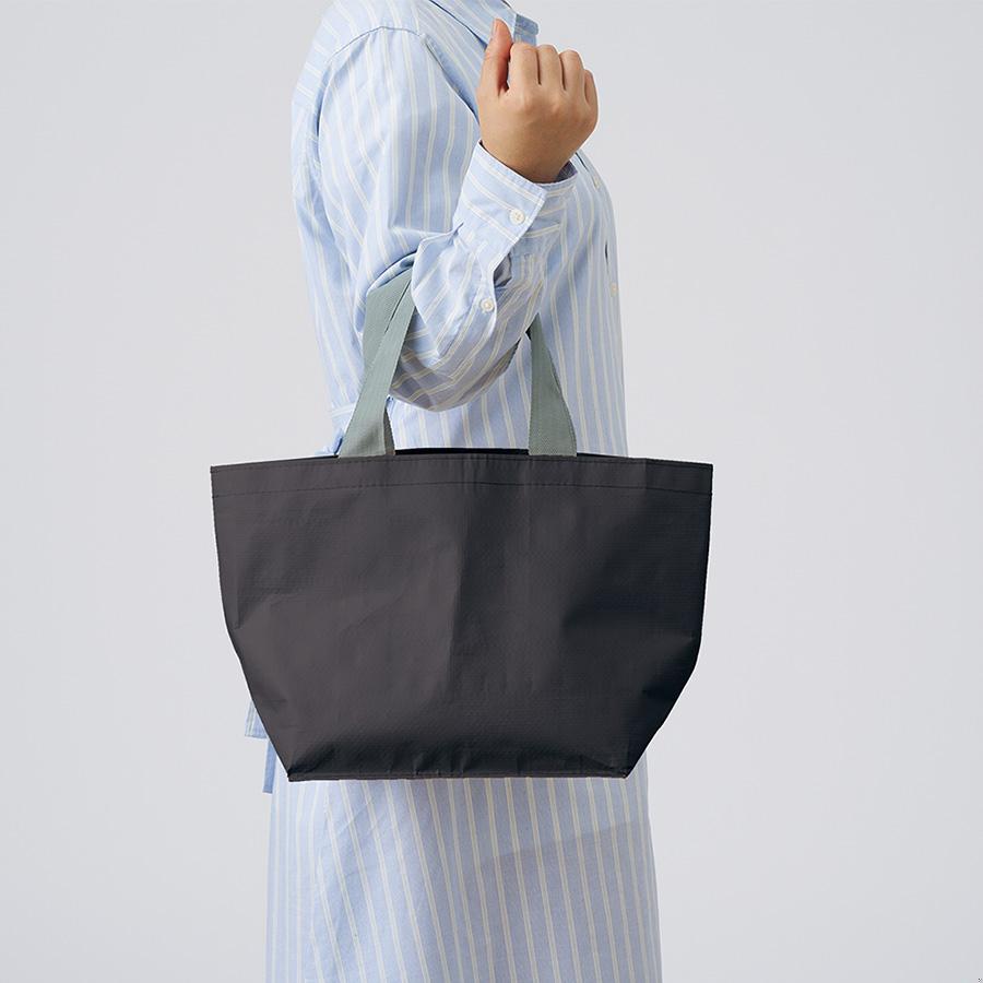 軽いレジャーシート素材で作られた持ち運びに便利なトートバッグです。