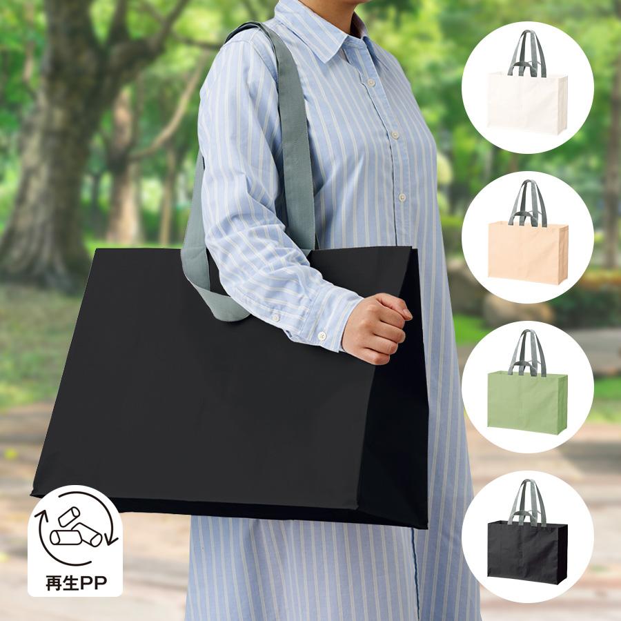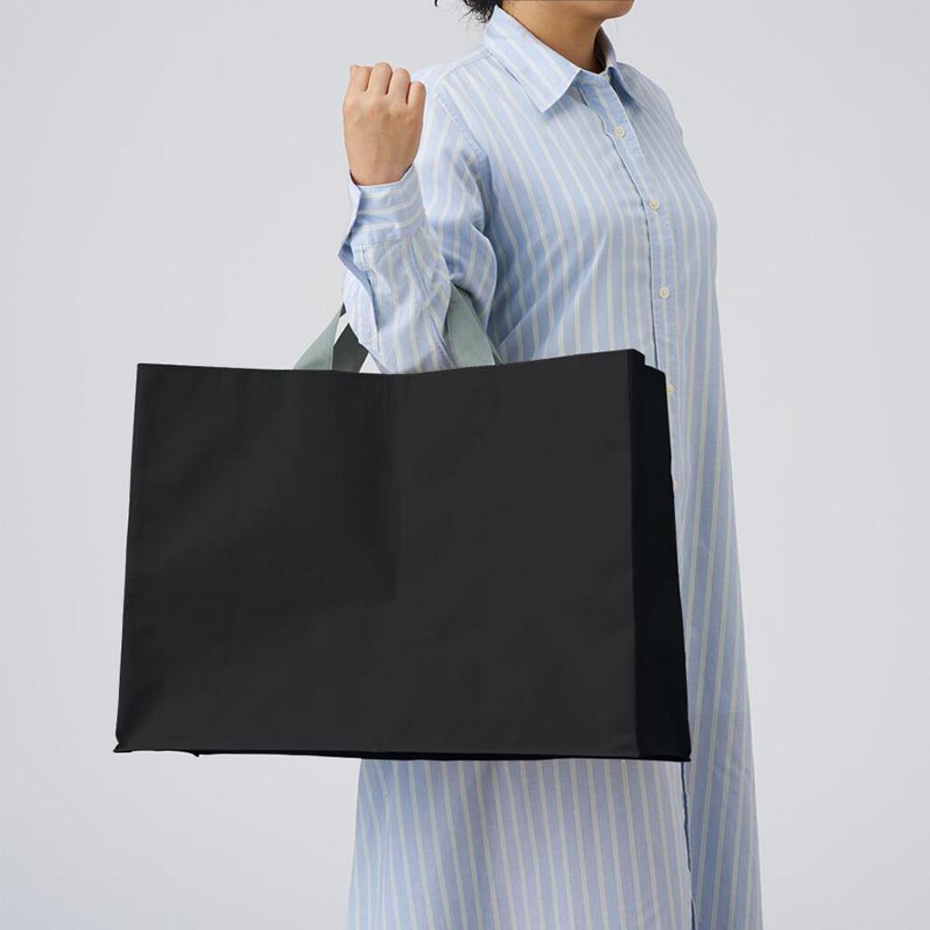 軽いレジャーシート素材で作られた持ち運びに便利なトートバッグです。