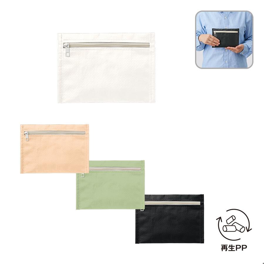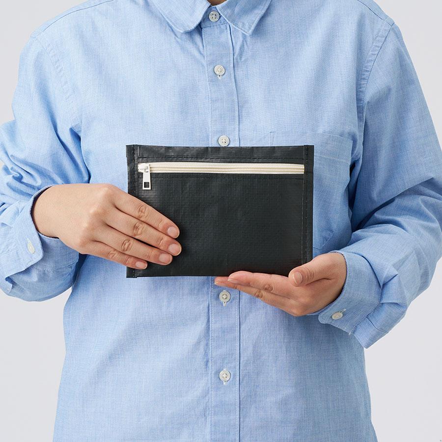 軽いレジャーシート素材で作られた持ち運びに便利なポーチです。