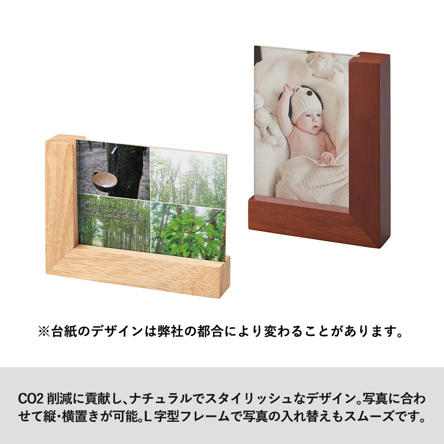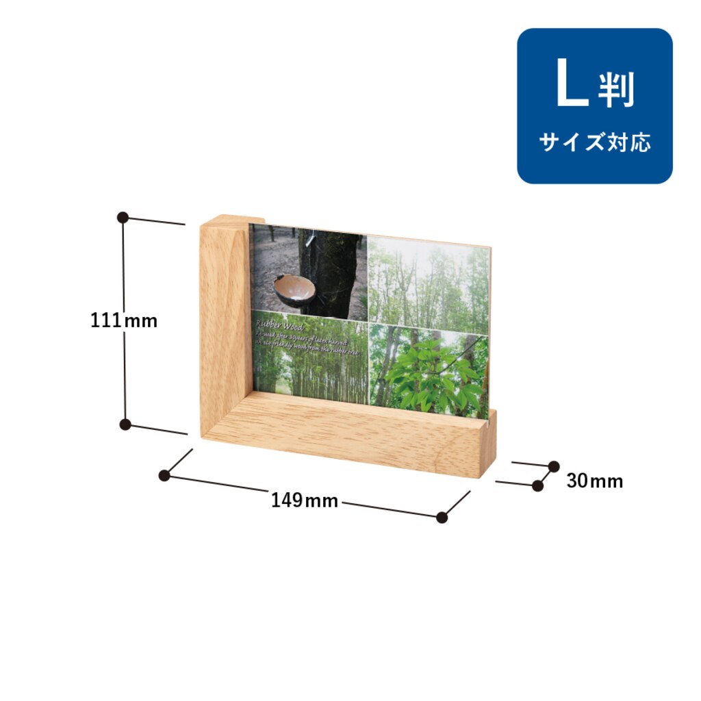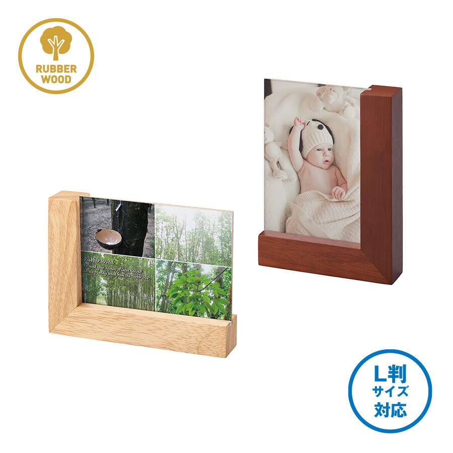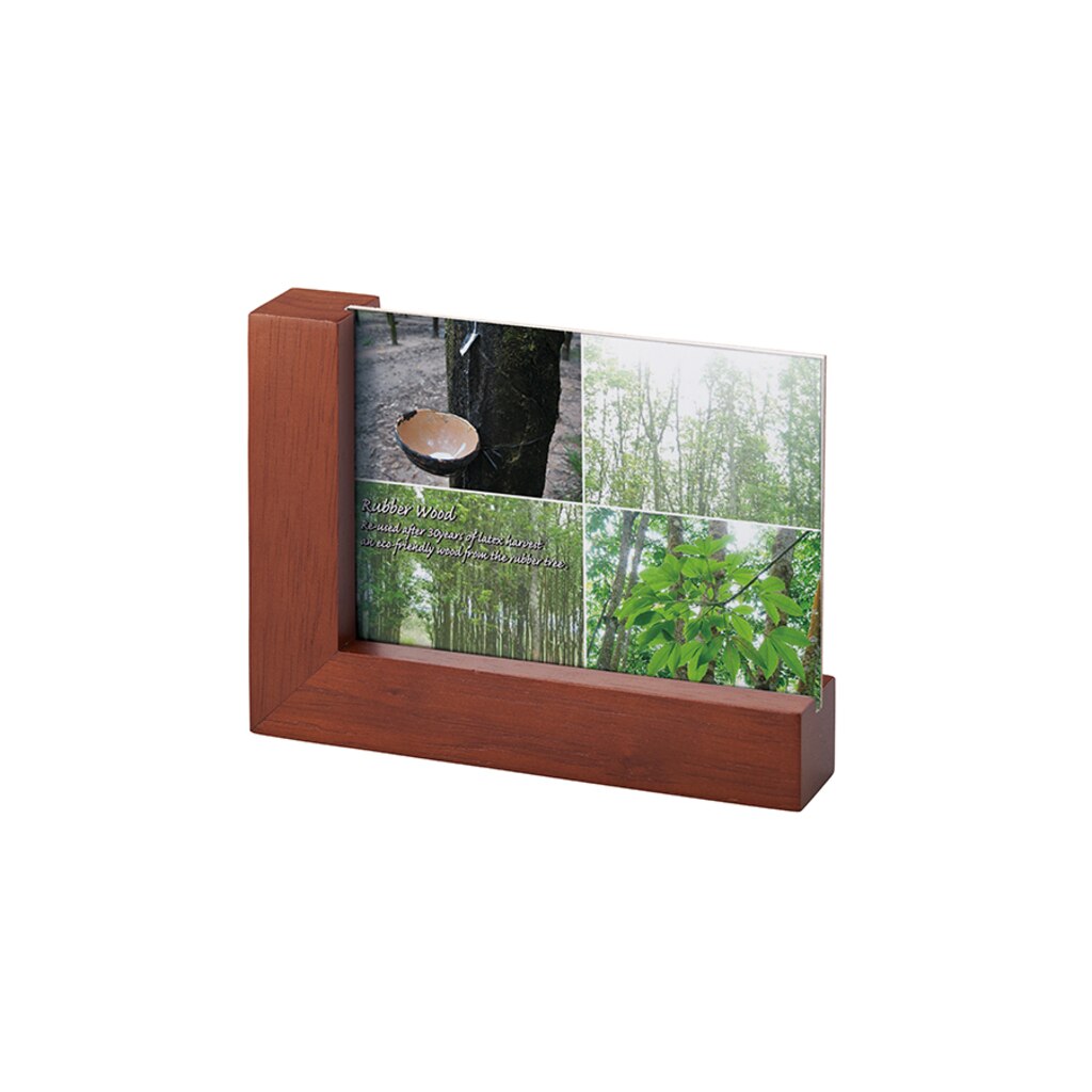 ギフトアイテムとして根強い人気のあるフォトフレームにラバーウッド素材の商品が登場しました。おしゃれなデザインのL字の淵で、幅広くご提案できる商品です。素材のゴムの木は家具やインテリア雑貨にも使われる木材で、天然ゴム採取後の廃材を再利用しているエコアイテムです。また、ゴムの木の花言葉は永久の幸せなので、卒業記念品などの贈り物としても重宝されています。